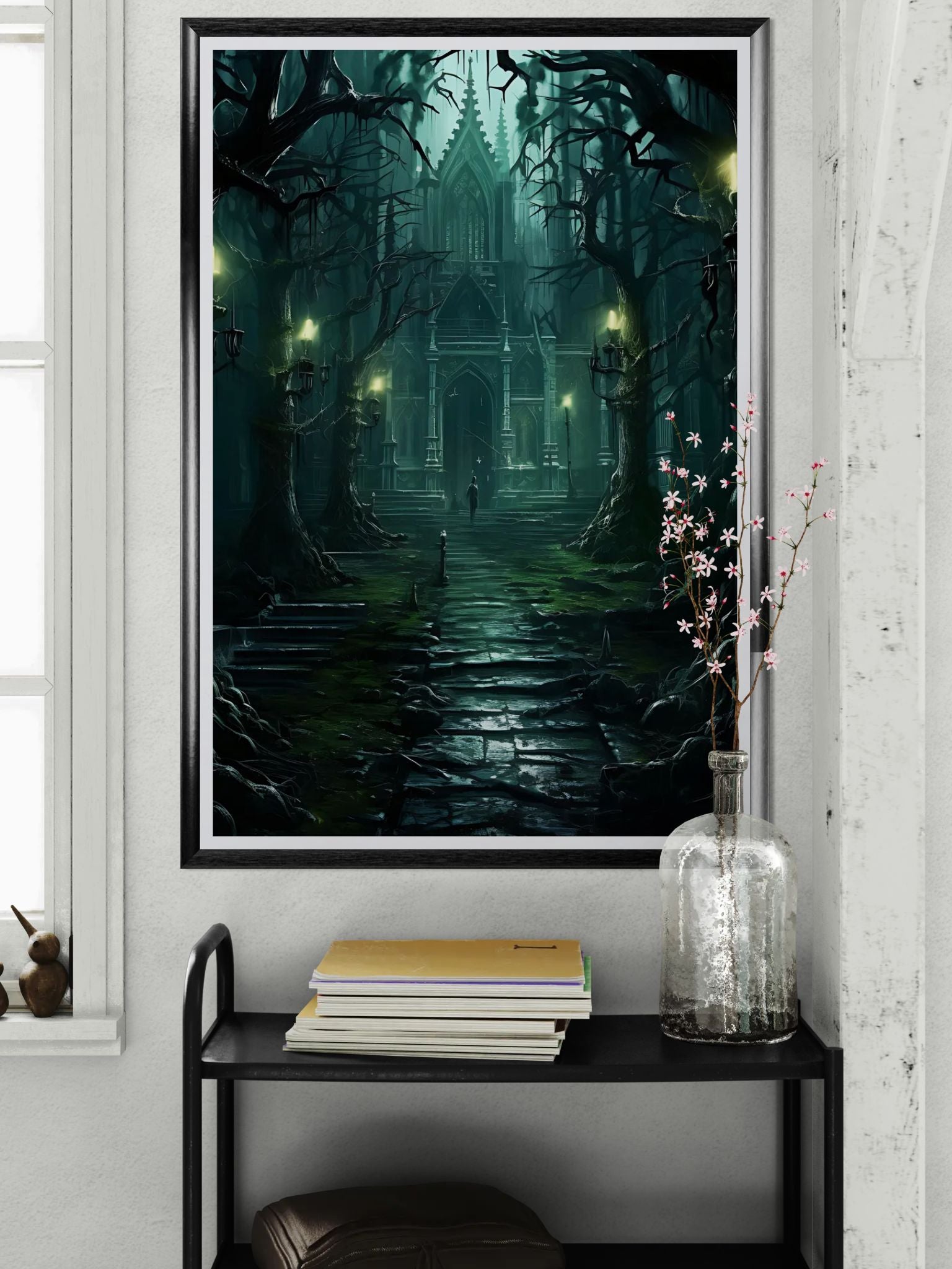Available in a wide range of sizes—from smaller prints like 9x12 and 11x14 for cozy corners, to large gothic wall art pieces like 24x36 and 32x48 that command attention. Each canvas print is professionally framed and ready to hang, available in your choice of Black, White, or Espresso to match your unique aesthetic. These gothic wall decor pieces are not only perfect for your own space, but also make unforgettable housewarming gifts, wedding gifts, or birthday presents for anyone who adores gothic home decor or has a flair for the unconventional.