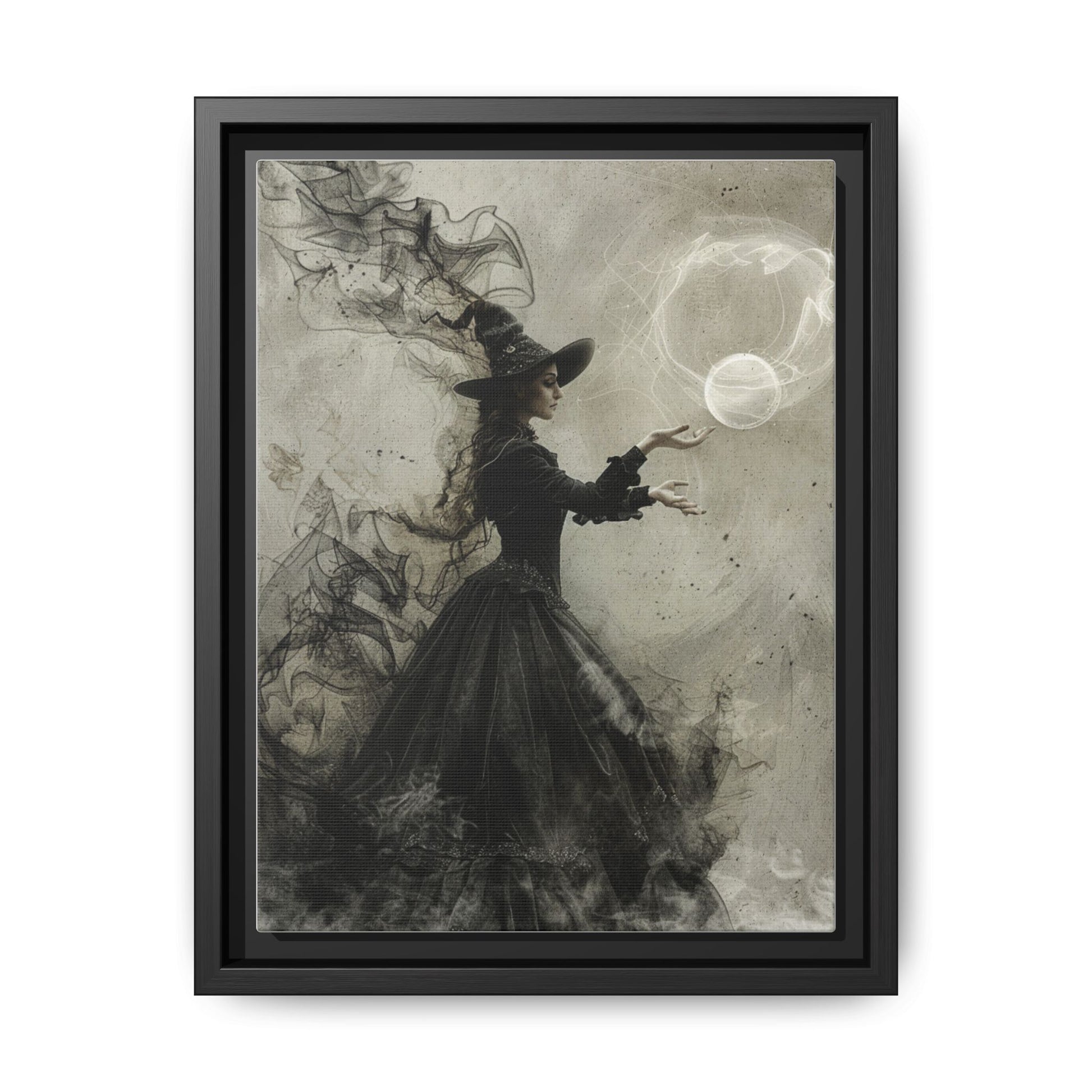 Printed on premium matte canvas, stretched over solid pinewood, and available in sizes from 9" × 12" to 32" × 48", framed in Black, Espresso, or White, this piece is a spellbinding addition to witchy gallery walls, gothic interiors, and mystical sanctuaries.