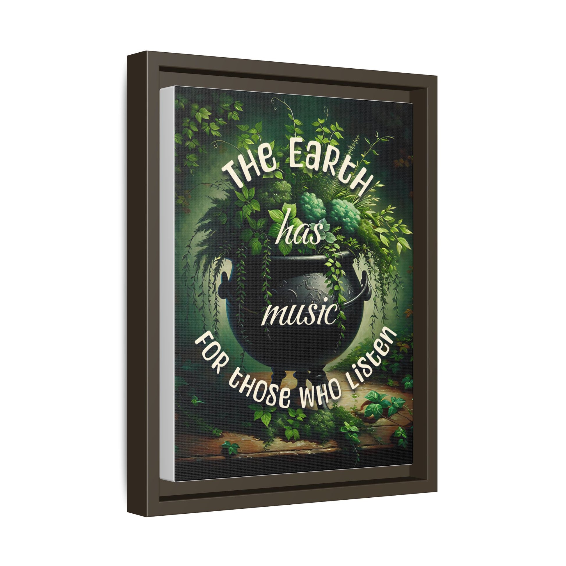 This framed matte canvas print, “Earth’s Music,” features a mystical witchy art print depicting a bubbling cauldron nestled in lush greenery. Above the scene floats the empowering positive affirmation: “The earth has music for those who listen.” Earthy tones and enchanting forest details evoke a serene, magical atmosphere—perfect for cultivating a sense of connection and intention in your space.