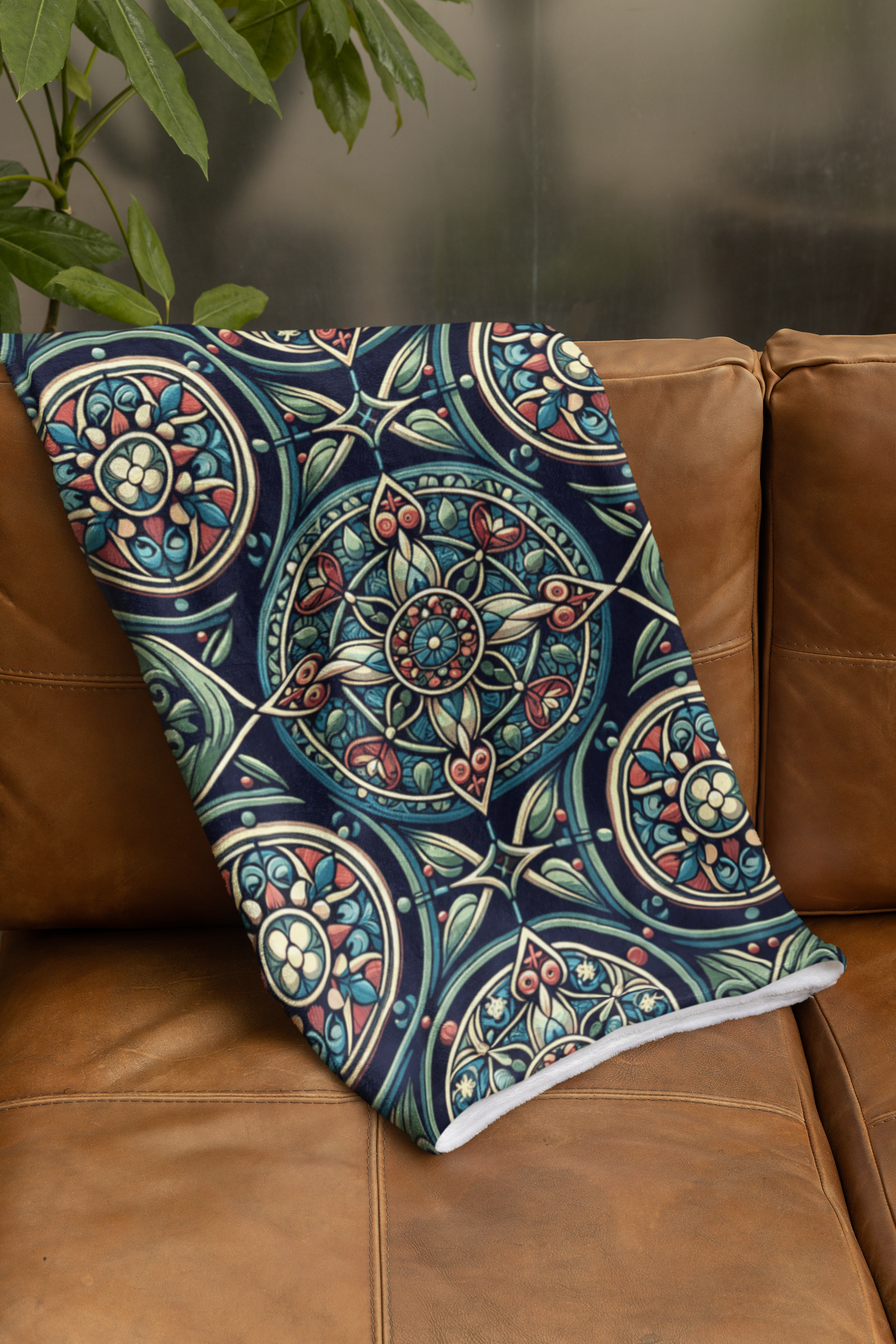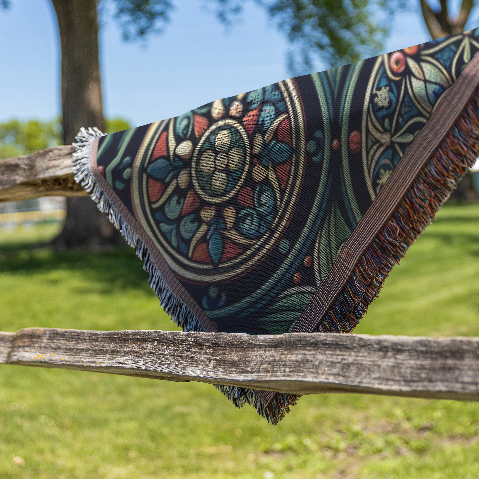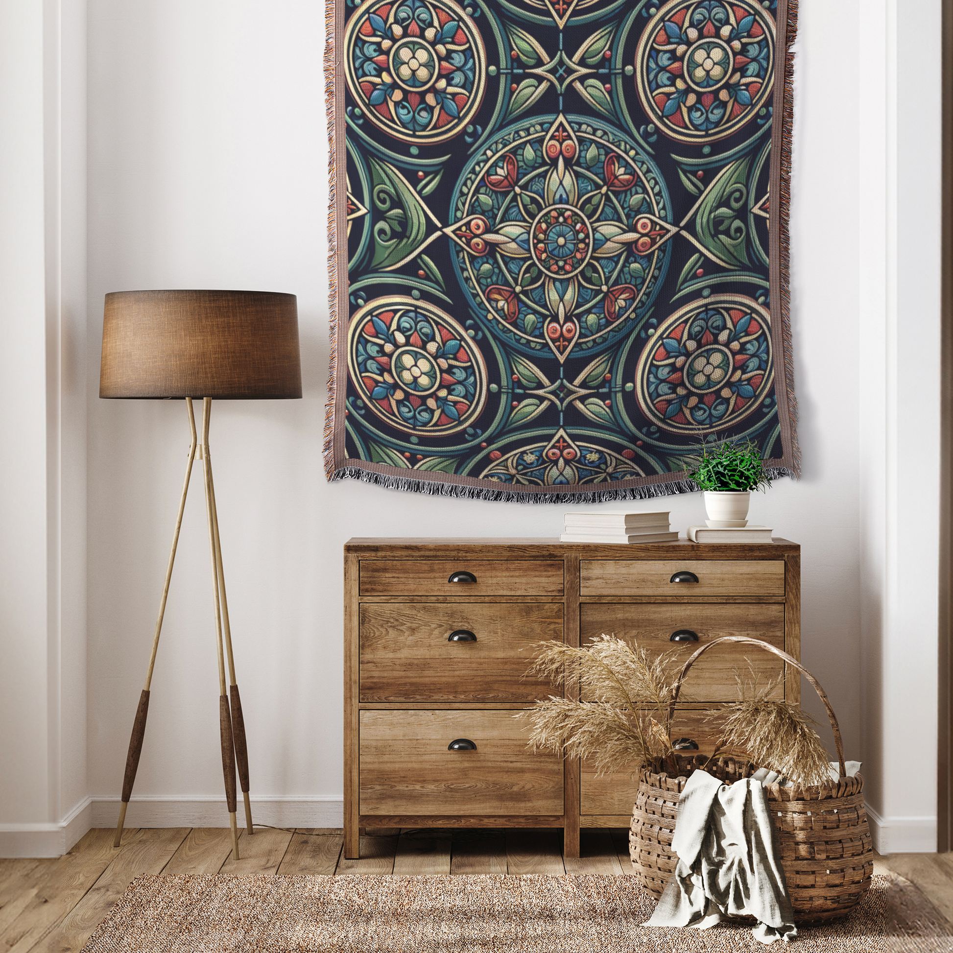 The colorful design features geometric patterns mixed with Victorian gothic aesthetics; it will add color and warmth to your home. Whether you're curling up for a movie night or adding a pop of personality to your living space, our woven throw blanket is the ultimate choice for anyone who believes that comfort and charm should always go hand in hand.