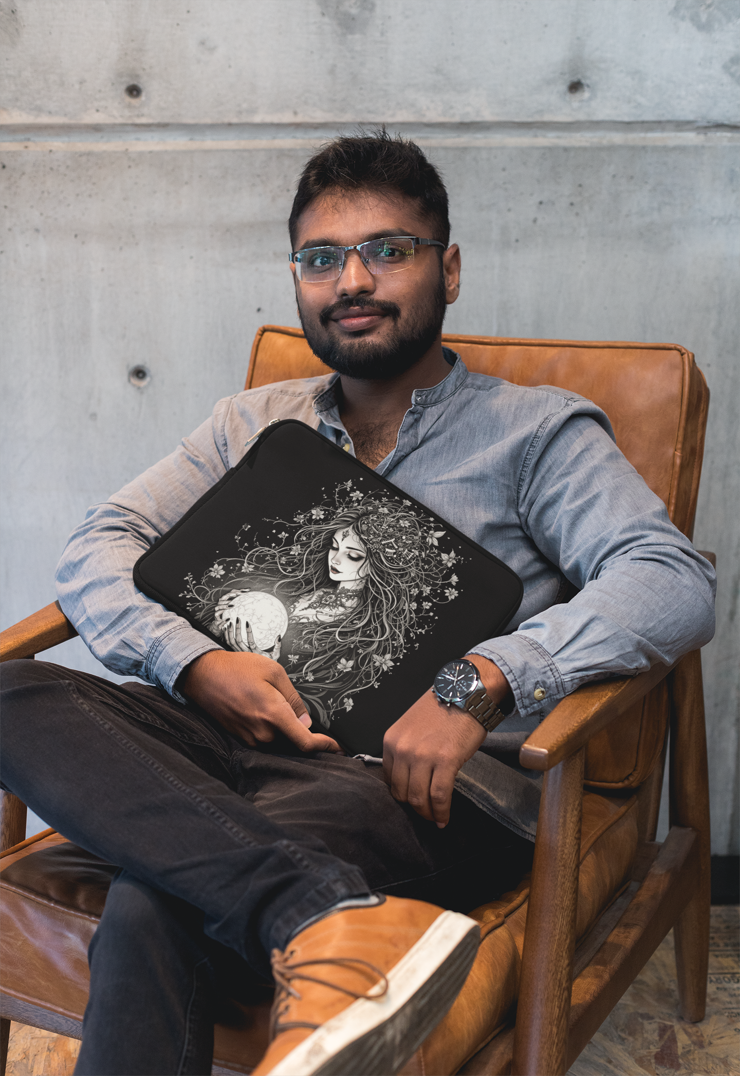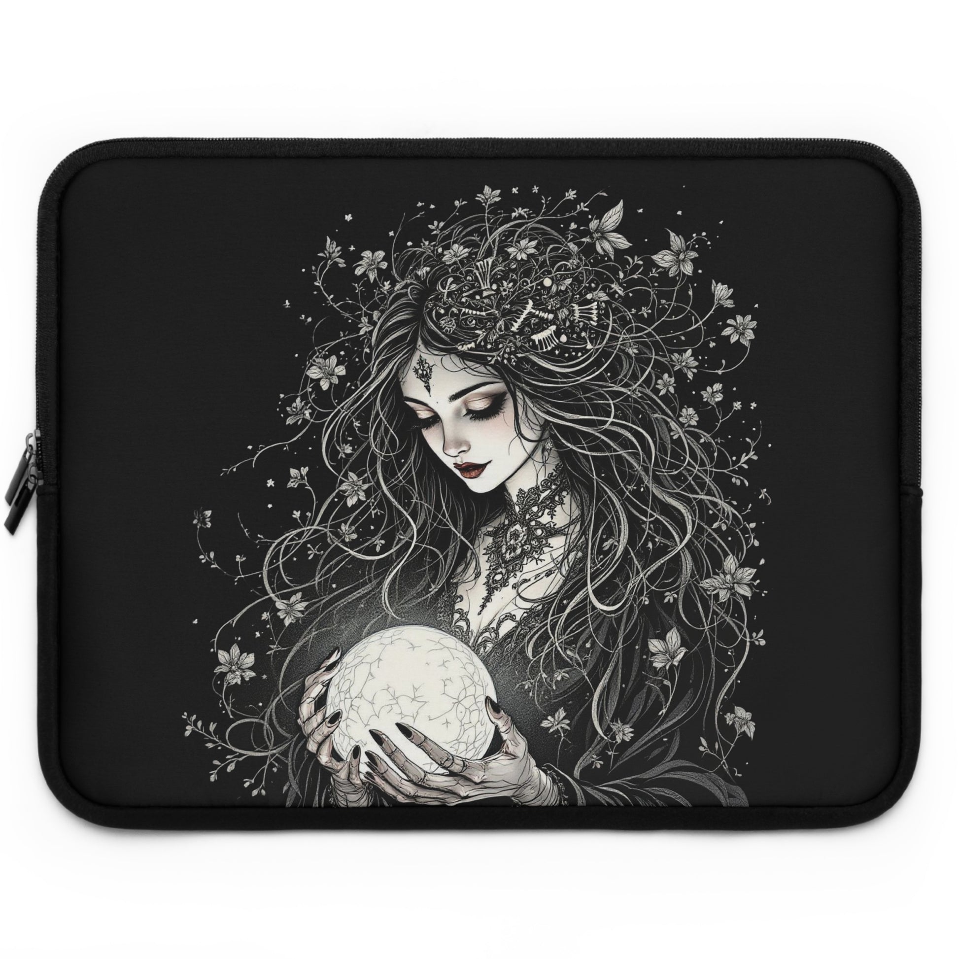 See beyond the veil with our Enchanted Vision laptop sleeve. This mesmerizing black case features a beautiful, mystical witch gazing into her crystal ball, surrounded by delicate butterflies, blooming flowers, and twisting vines. It is perfect for those who walk the line between ethereal beauty and dark enchantment. Whether you're casting spells, reading tarot, or simply embracing your inner mystic, this piece was made for you.