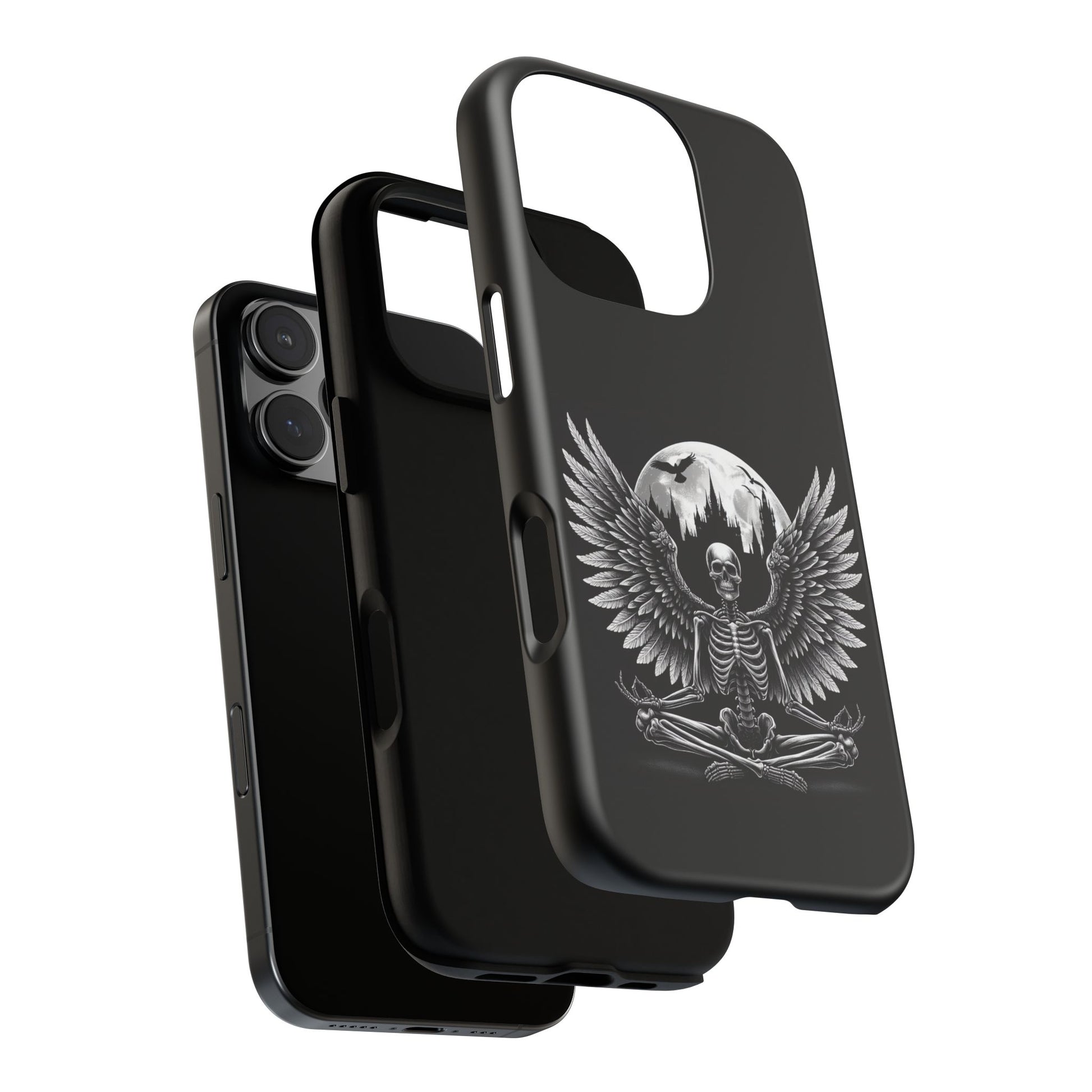 Tap into your dark side and your inner peace with our Eternal Balance gothic phone case. Featuring a beautifully detailed winged skeleton in a serene yoga pose, this matte black case is more than just protection for your device — it’s a statement of harmony between life, death, and transformation.