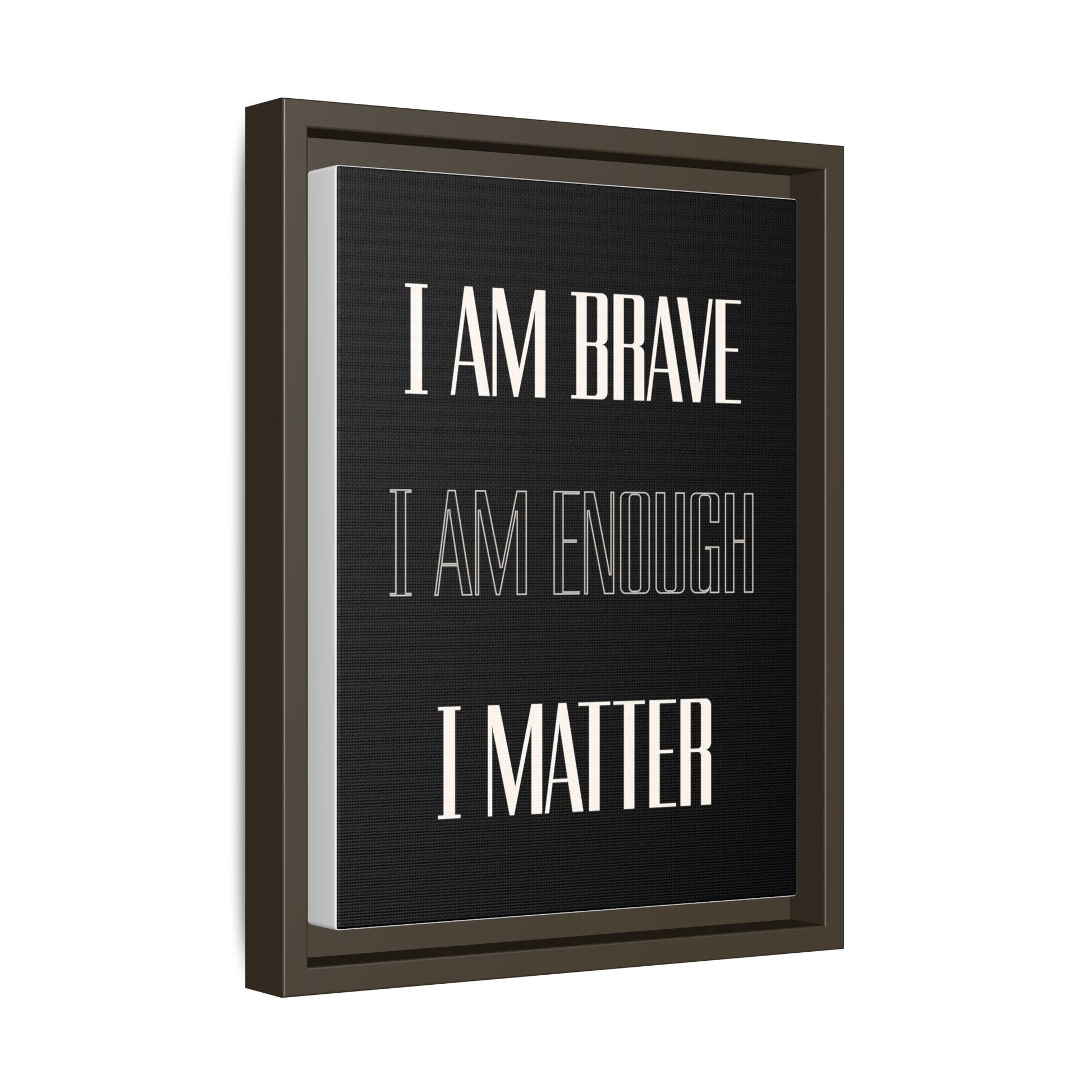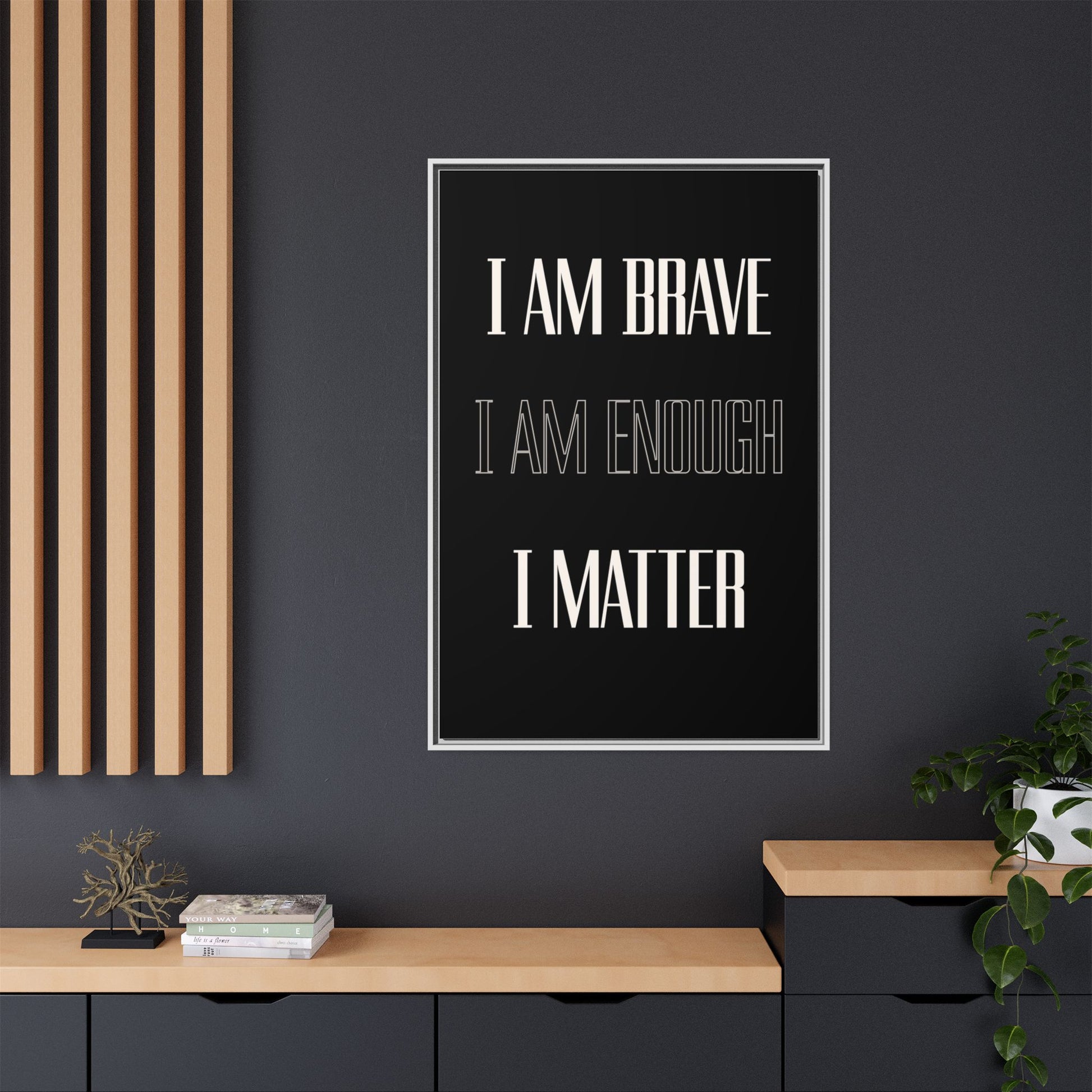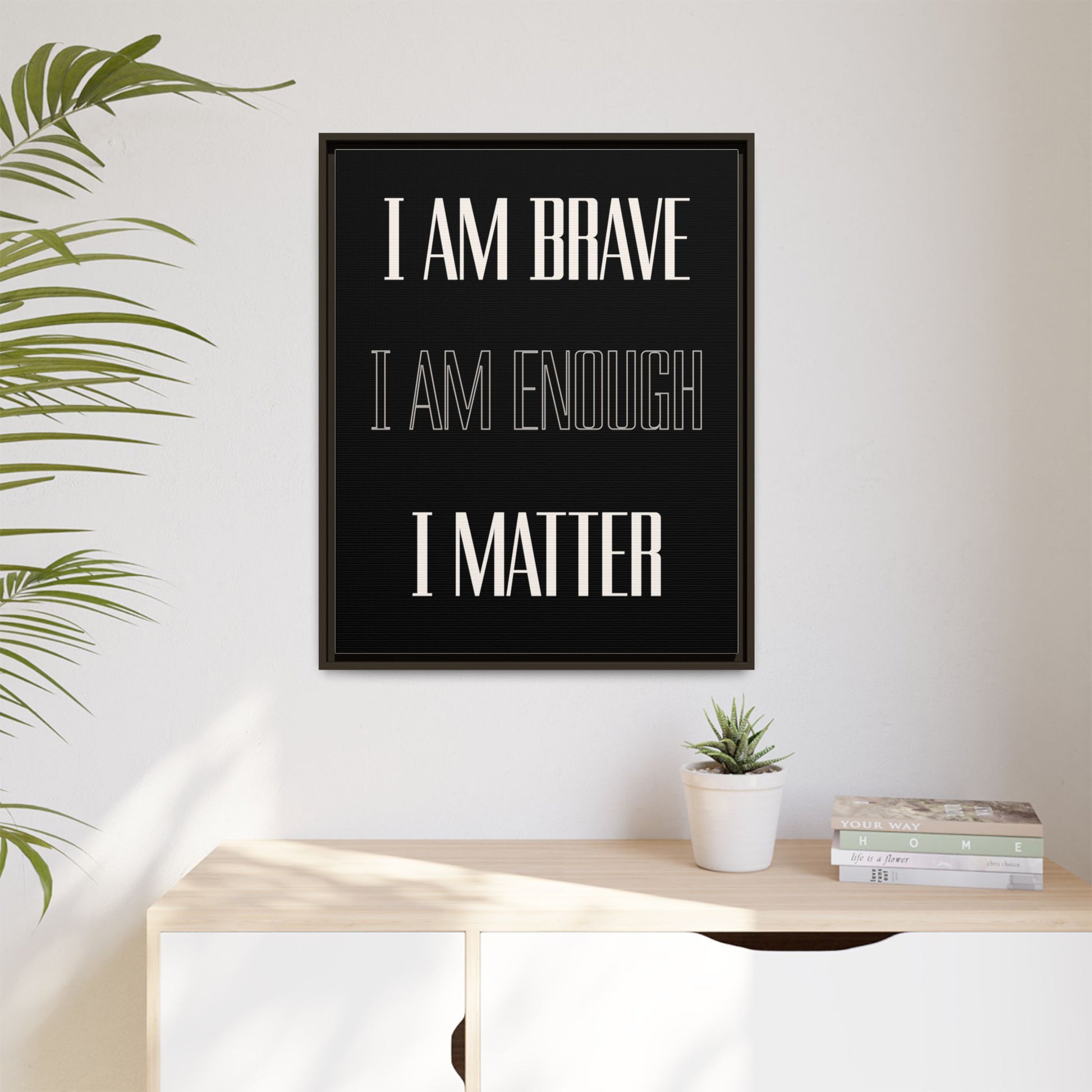Bring power and affirmation into your space with this minimalist gothic canvas print, featuring three bold statements: "I am brave, I am enough, I matter." Set against a sleek black background, this piece blends simplicity with emotional depth, offering a daily reminder of resilience and inner strength.