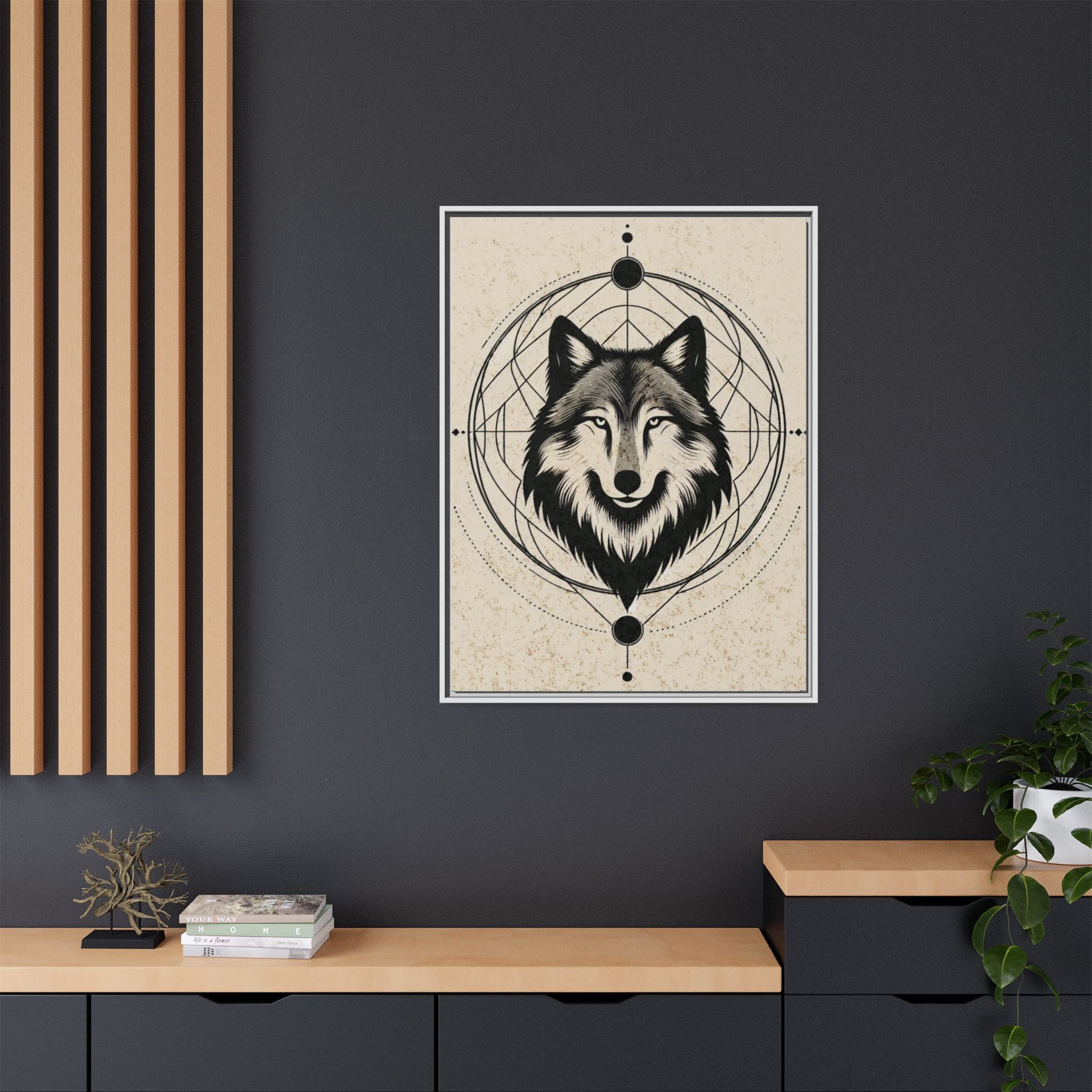"Lunar Majesty" is a gothic canvas wall art print that adds a powerful, mystical atmosphere to your space. At the center, a majestic wolf’s head is surrounded by abstract circles, moon phases, and occult-inspired symbols, capturing the essence of dark fantasy art. The textured sepia tones and grungy finish give it a timeless vintage quality, perfect for fans of gothic wall decor and witchy wall art.