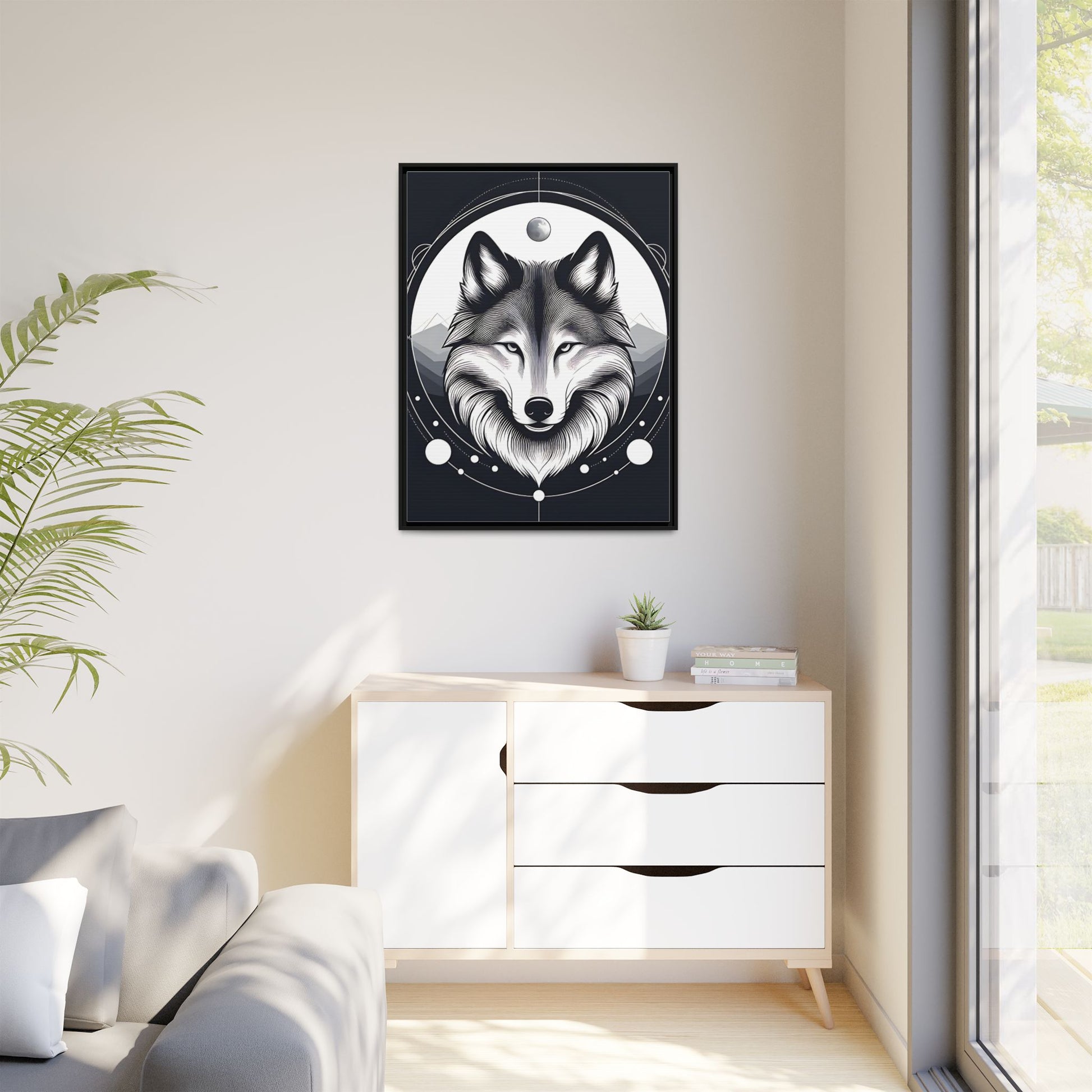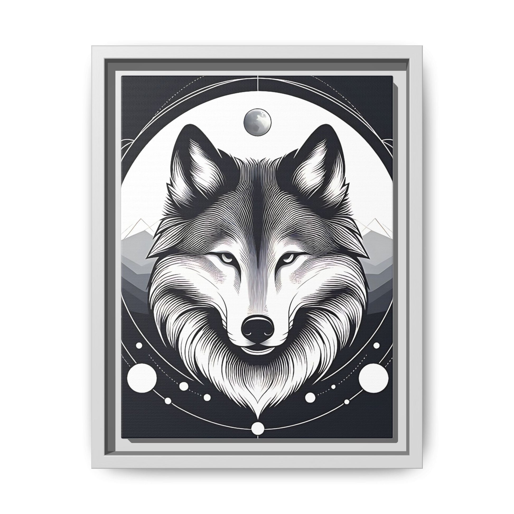 Summon wisdom, mystery, and gothic energy with "Lunar Sentinel", a moody canvas print that blends dark fantasy with quiet strength. At its heart, a regal wolf’s head, framed by a glowing full moon, stands watch over a dreamy abstract landscape, rich with mountainous shapes and gothic-inspired symbols.