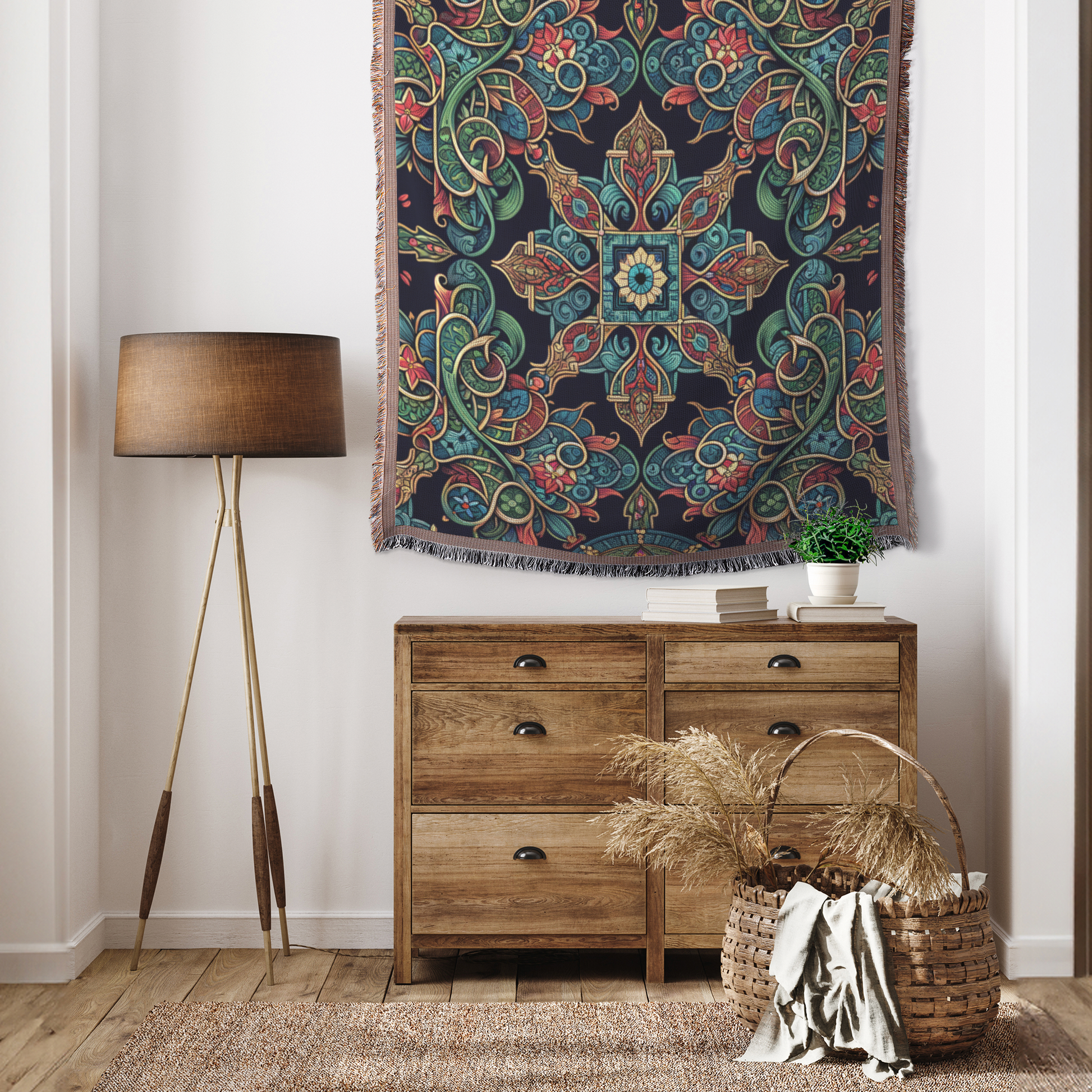 With the striking design inspired by the gothic Victorian styles of the day, this colorful blanket will bring a pop of color to any room. Whether you're curling up for a movie night or adding a dab of personality to your living space, our woven throw blanket is the ultimate choice for anyone who believes that comfort and charm should always go hand in hand.